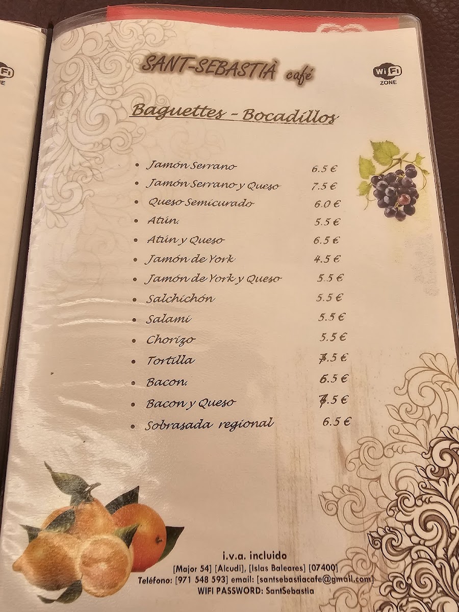 Welcome to Sant Sebastia, a charming café nestled in the heart of Alcudia, Illes Balears. This delightful coffee shop is a fantastic spot for families and anyone seeking a taste of traditional Spanish hospitality. The menu features a range of mouthwatering options, from perfectly brewed coffee to delectable breakfast items like the tasty bacon bocadillo and warm, crusty baguettes.